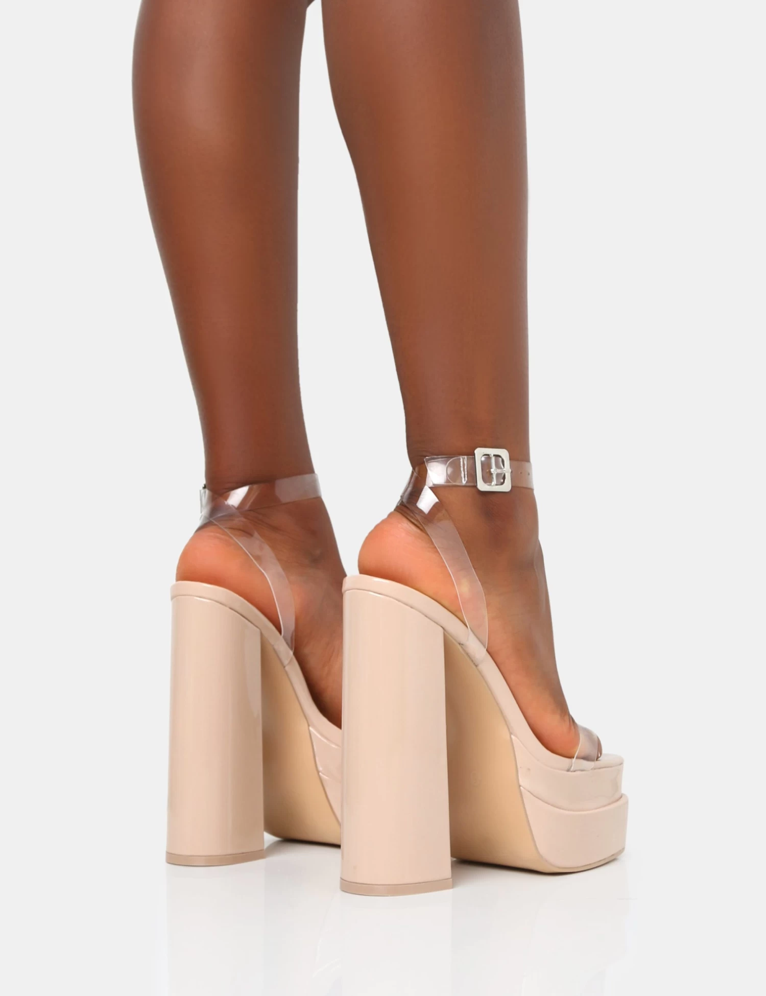 CALLA-fornia is calling – Featuring Calla in nude, the barely there style with perspex straps on an extreme platform block heel.