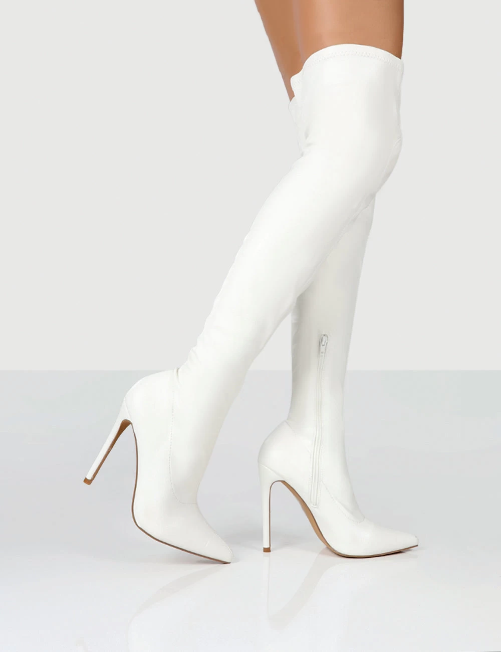 Every girl needs these ultimate thigh high boots! Make a statement in Confidence, featuring a high stiletto heel with a thigh high fit!