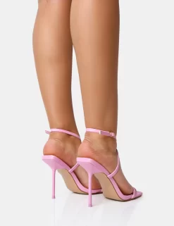 Amy Baby Pink Strappy Barely There Square Toe Stiletto Heels