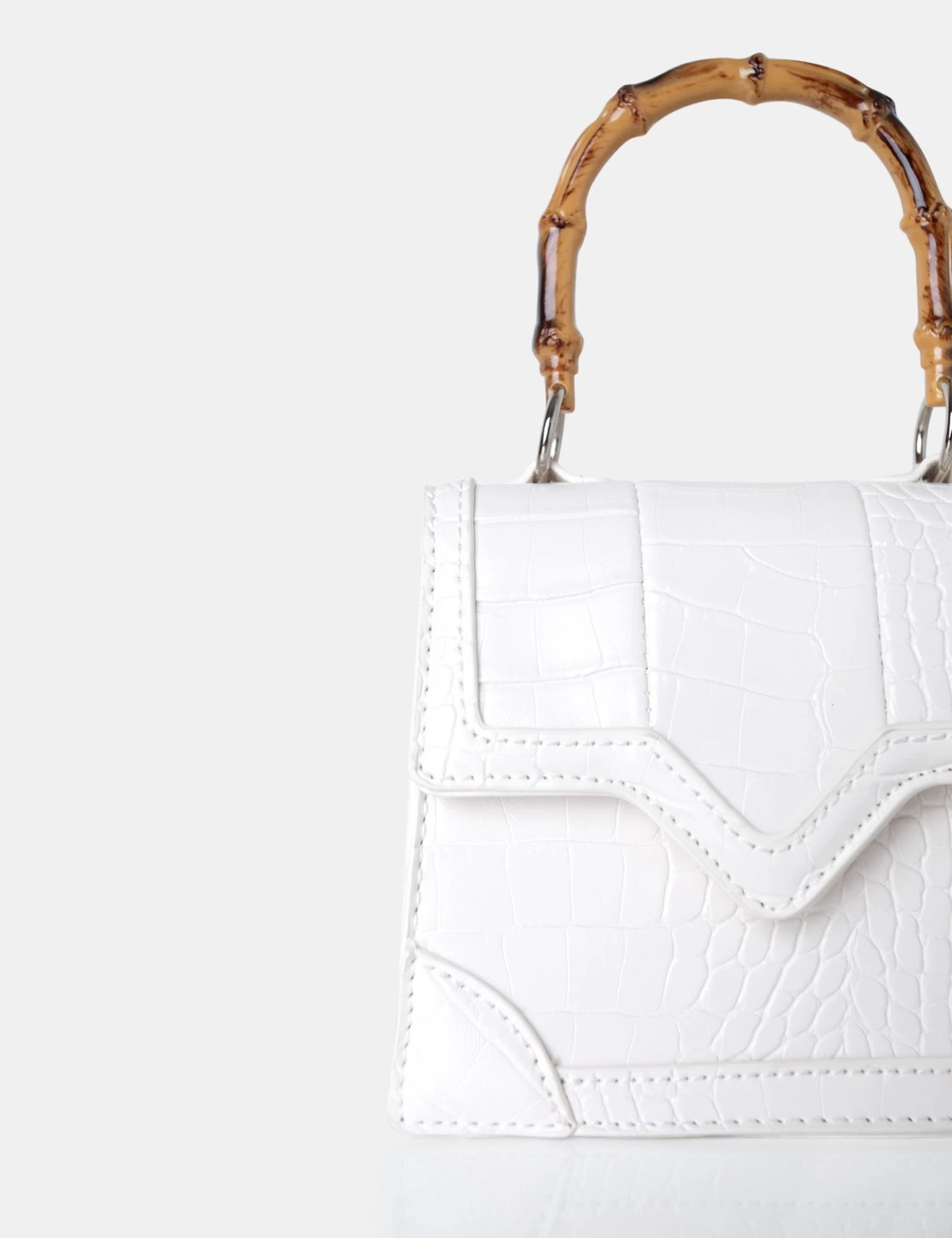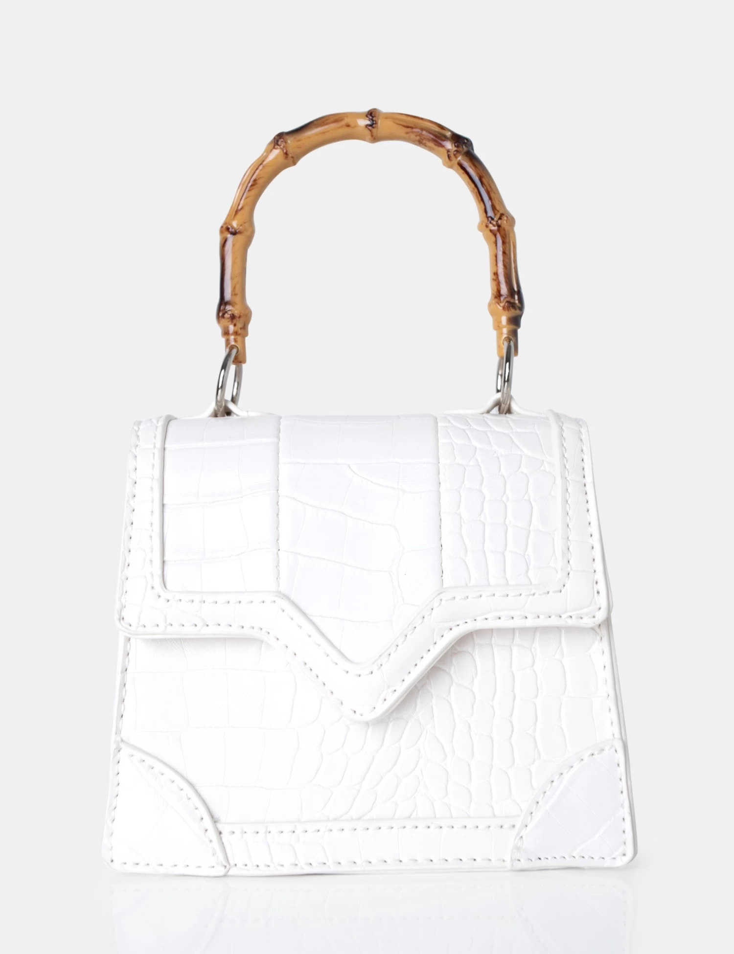 Slay the summer in style with the Jessica White Bamboo Top Handle Croc Mini Bag! This chic mini bag is the perfect mix of classy and modern. Take it anywhere to complete your look with an ultimate statement of fashion.Â