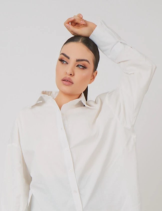 A must have updated basic for this Autumn with this white oversized fit shirt in poplin.