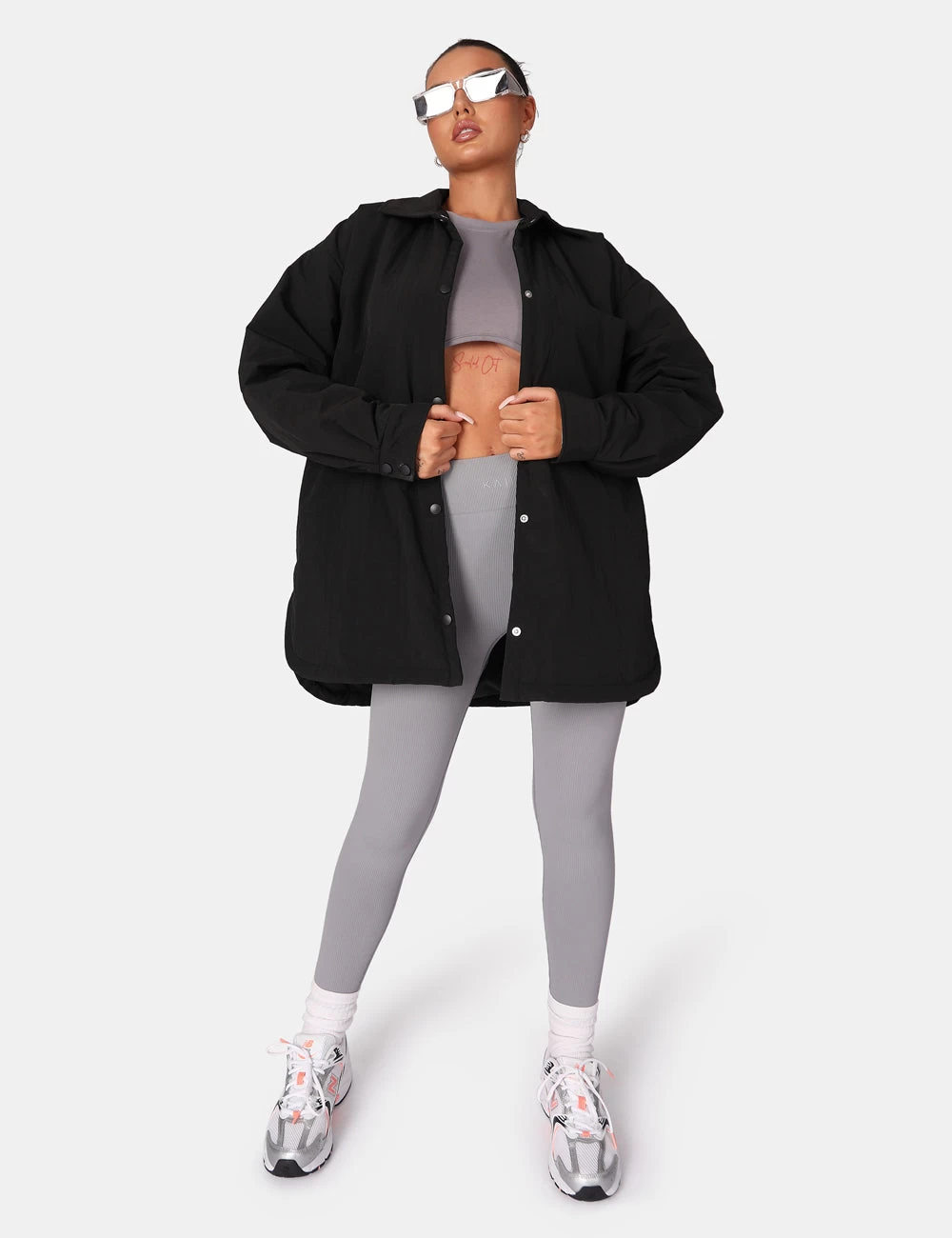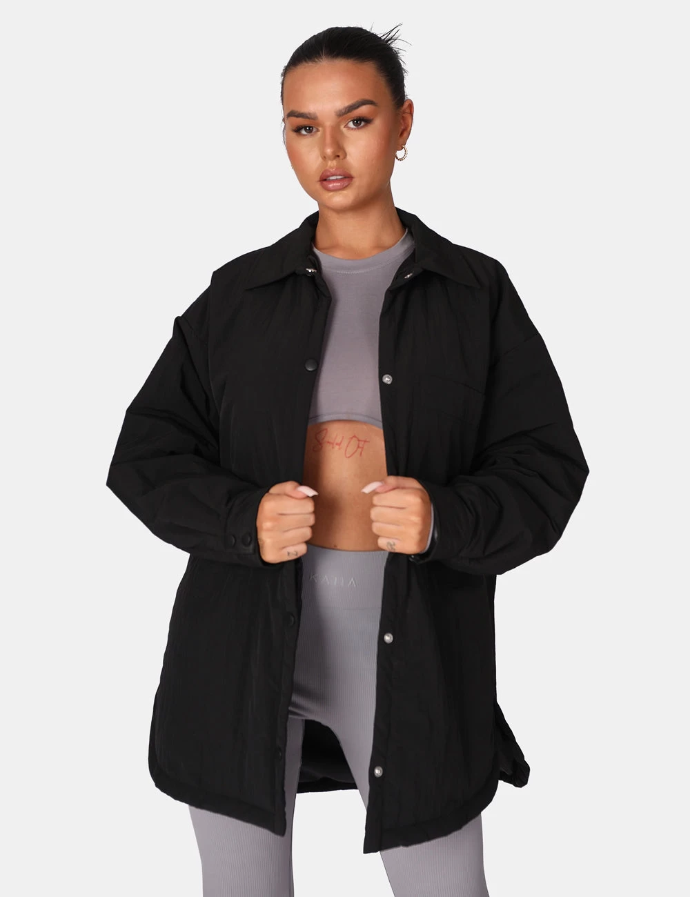 Stay warm this Autumn with this longline padded shacket featuring pockets and button fastenings in black.