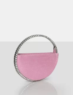The Alessia Baby Pink Croc Circle Diamante Mini Handbag