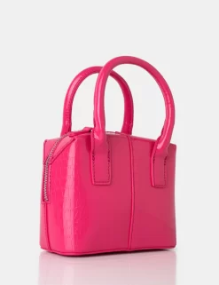 The Polly Bright Pink Croc Top Handle Mini Bag