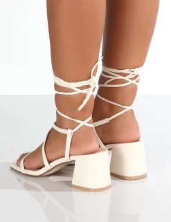Mabel Wide Fit Off White PU Ankle Tie Block Heeled Sandals