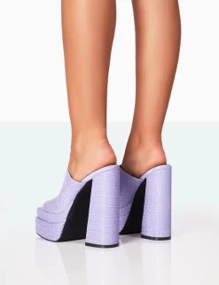 Skyhigh Neon Purple Croc Chunky Platform High Heeled Mules
