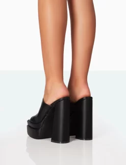 Skyhigh Black Grain PU Chunky Platform High Heeled Mules