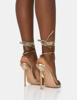 Nobu Gold Lace Up Round Toe Perspex Stiletto Heels