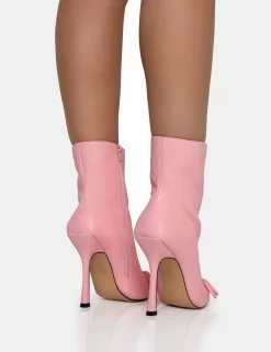 Rhia Pink Pu Bow Pointed Toe Stiletto Ankle Boots