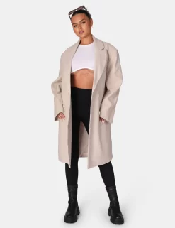 Longline Oversized Wool Coat Stone