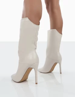 Lisel Ecru PU Pointed Toe Stiletto Heeled Ankle Boots