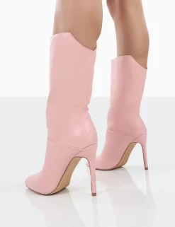 Lisel Pink PU Pointed Toe Stiletto Heeled Ankle Boots