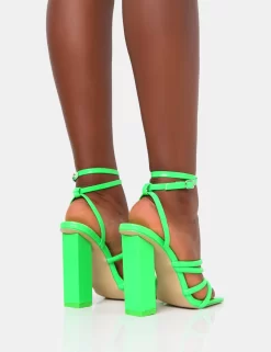 Tobi Neon Lime Strappy Square Toe High Block Heels