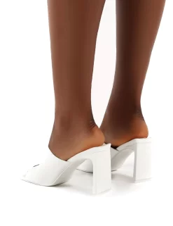 Vice White Pu Wide Fit Square Toe Detail Heeled Mules