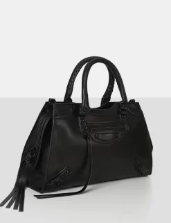 The Willa Black Matte Croc Zip Detail Tote Bag