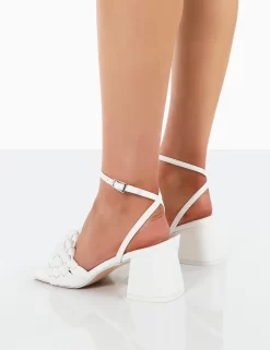 Got This White Pu Woven Square Toe Block Mid Heeled Mule Sandals