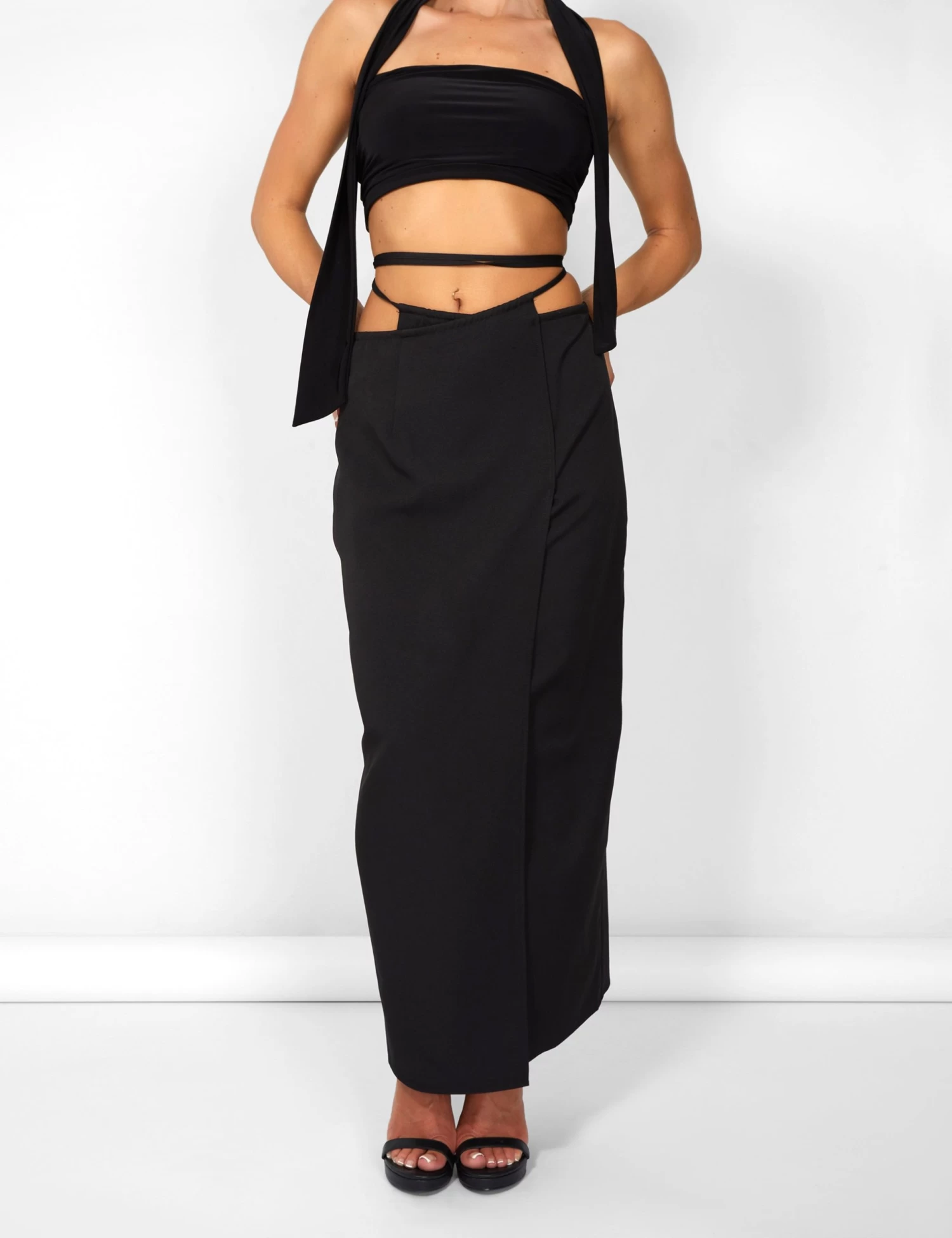 This Kaiia Wrap Tie Side Maxi Skirt in Black is the perfect way to up your style game for any occasion! This skirt is incredibly versatile – dress it up for a glam night out, or dress it down for a low-key daytime look. Put the ultimate AW slay in your wardrobe!
