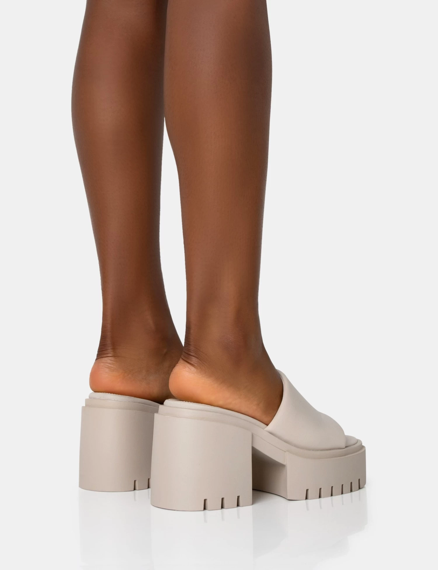 Sabeena Ecru Chunky Mule Round Toe Mid Heel Sandals
