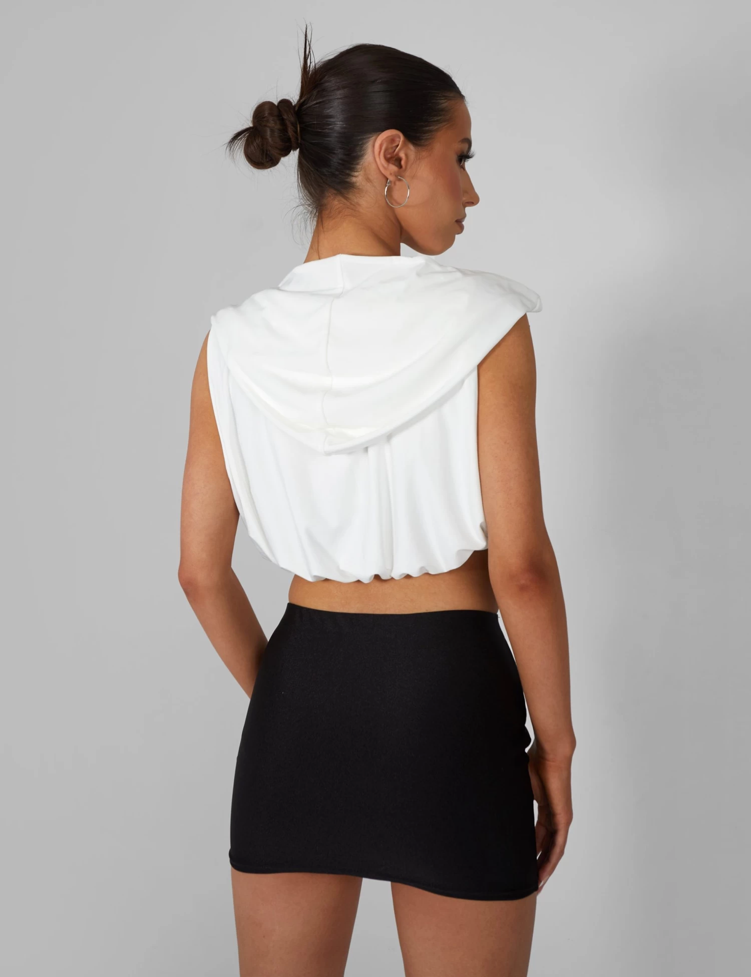 Introducing the new era of Public Desire! Step into our fantasy in bold metallics, sci fi sexy cut out pieces and vibrant prints. Introducing the perfect addition to your wardrobe for achieving that effortlessly chic look – the Sleeveless Wrap Front Top With Hood in Ivory. The sleeveless style is perfect for warmer days or layering, and the added hood provides an extra touch of style and functionality. This top will make you feel like you are channeling your inner Kylie.Â