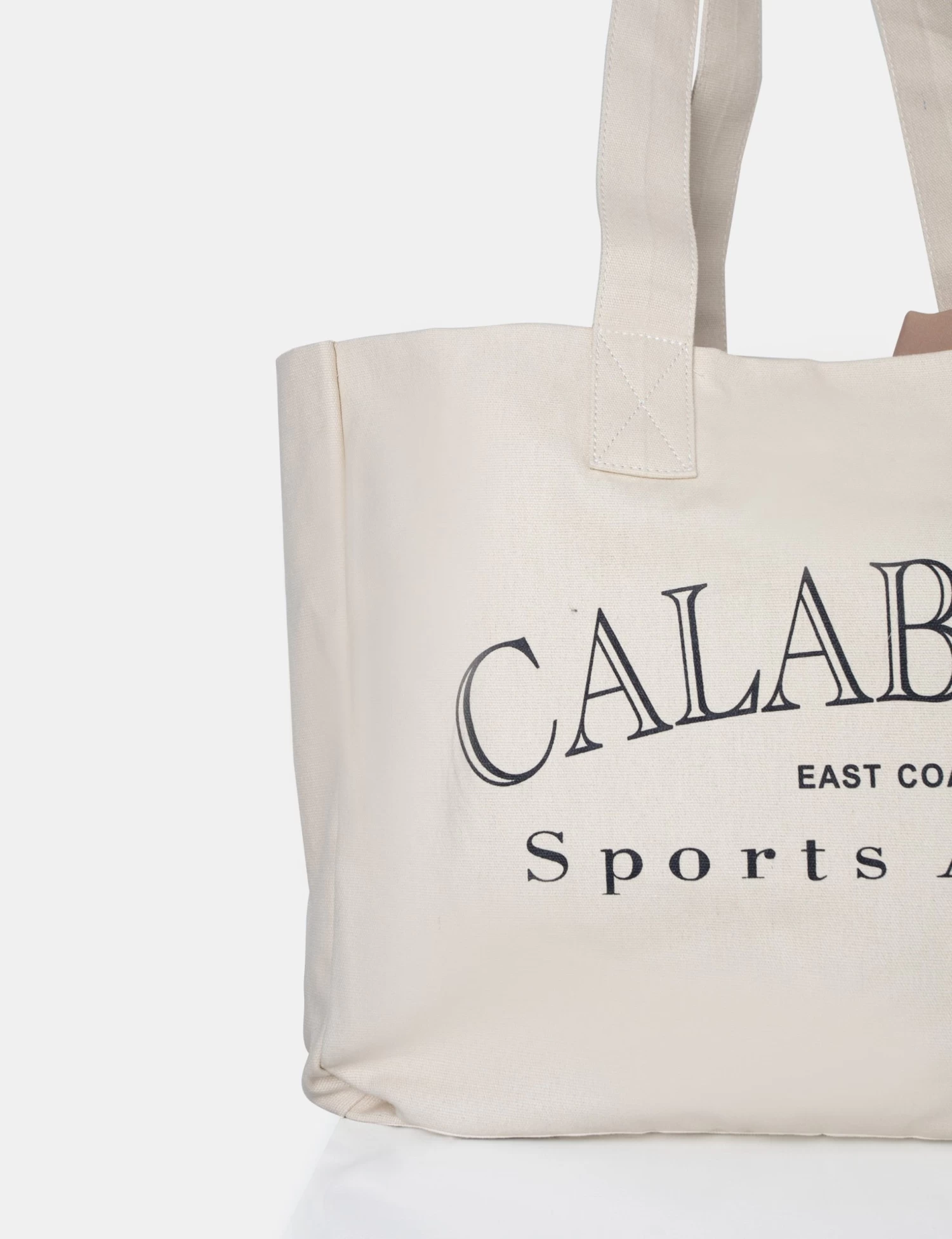 You’ll never be too “tote”-ally unprepared for the outdoors again with The Calabasas Oversized Off White Canvas Tote Bag! You’ll be “carry-ing” it all in style with this large, two-toned tote that features an eye-catching graphic phrase, and is perfect for a day out on the water, sports field, or just casually toting your everyday essentials. It’s a must-have accessory for any fashion-forward, active person!
