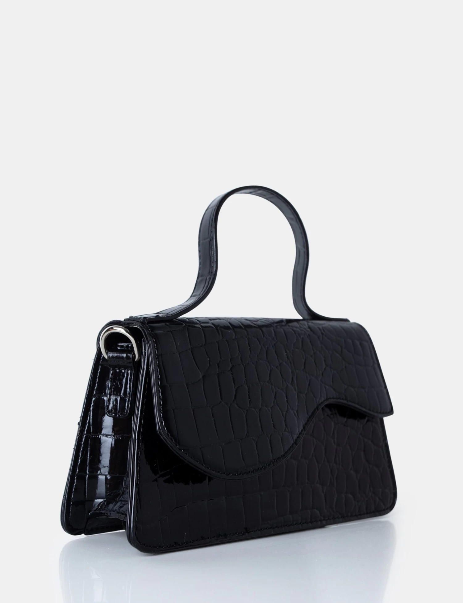 Introducing the Polly Black Croc Top Handle Mini Bag, a modern spin on a timeless classic! Sheer sophistication with just enough quirkiness to make your outfit stand out in the crowd. Get the best of both worlds – timeless charm and trendsetting appeal!
