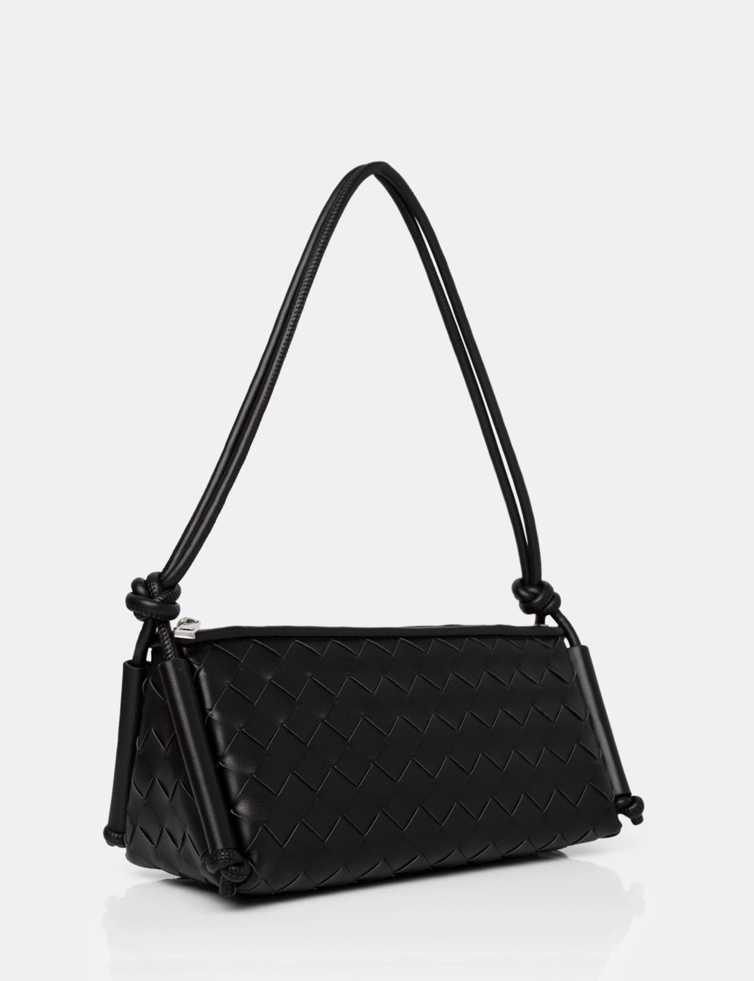 Ready to slay? Say hello to Tate. The simple shoulder bag you need in you wardrobe. The Tate Black Woven Oblong Knotted Handle Shoulder Bag is on our most wanted list!
