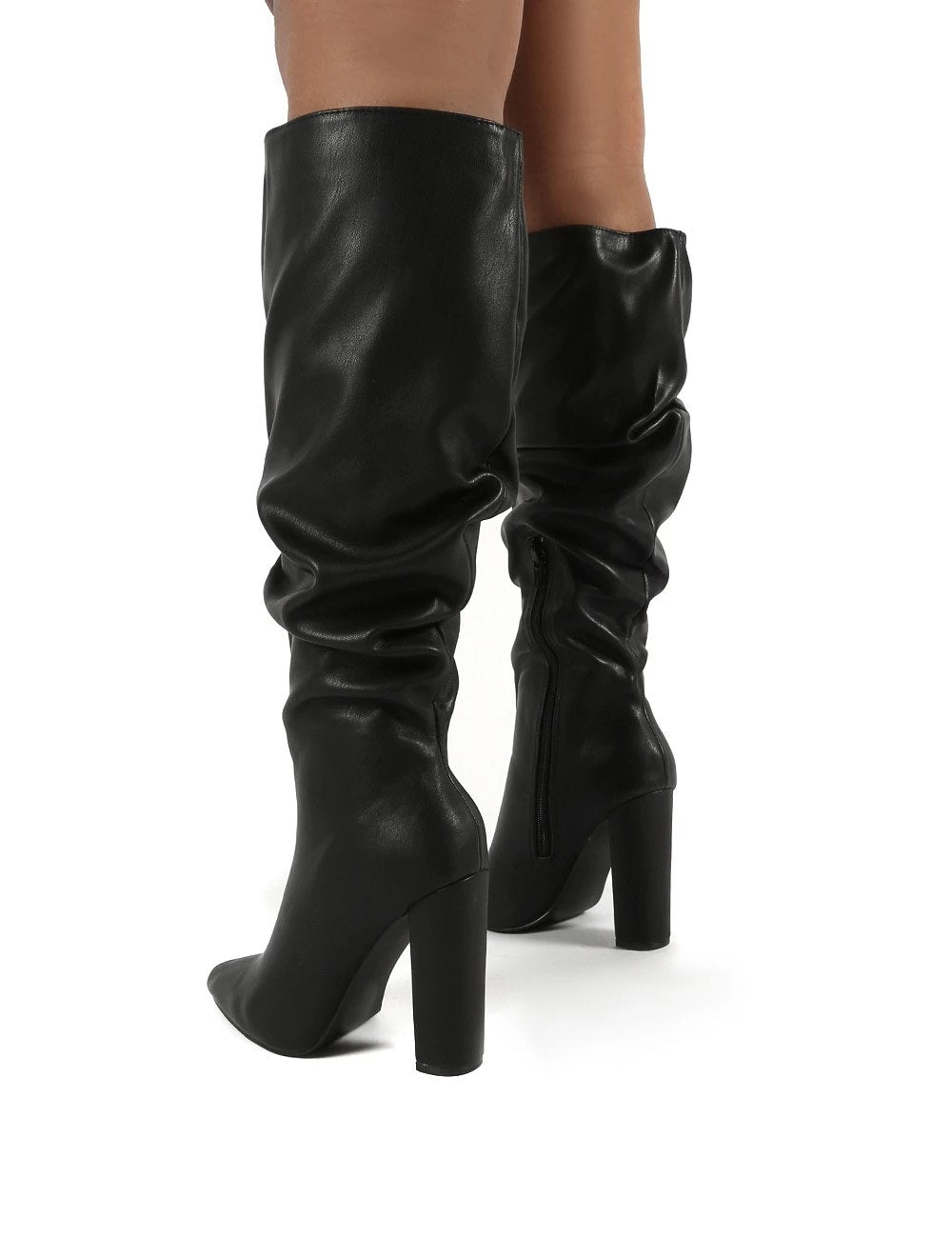 Yours Black Wide Fit PU Heeled Knee High Block Boots