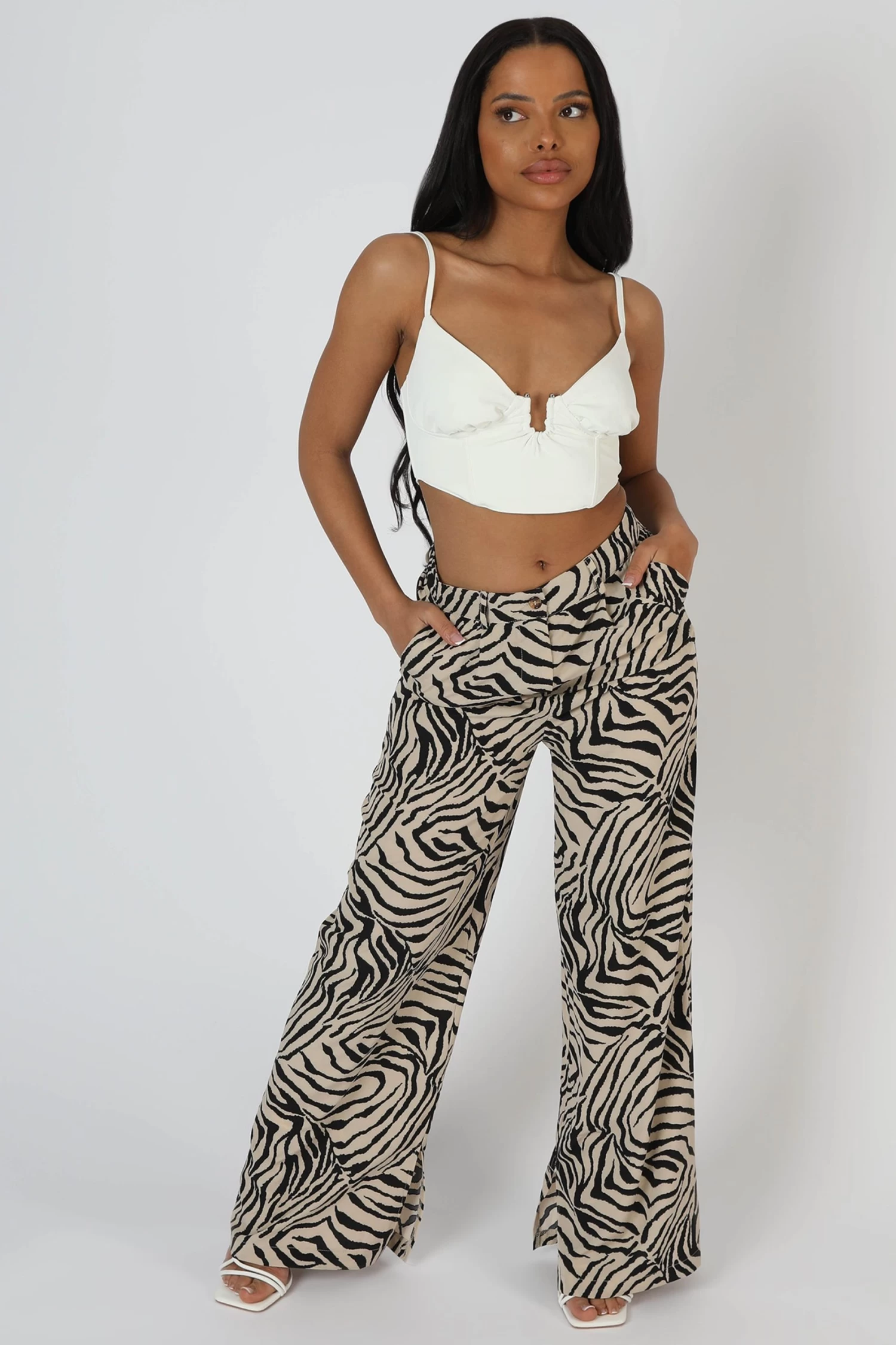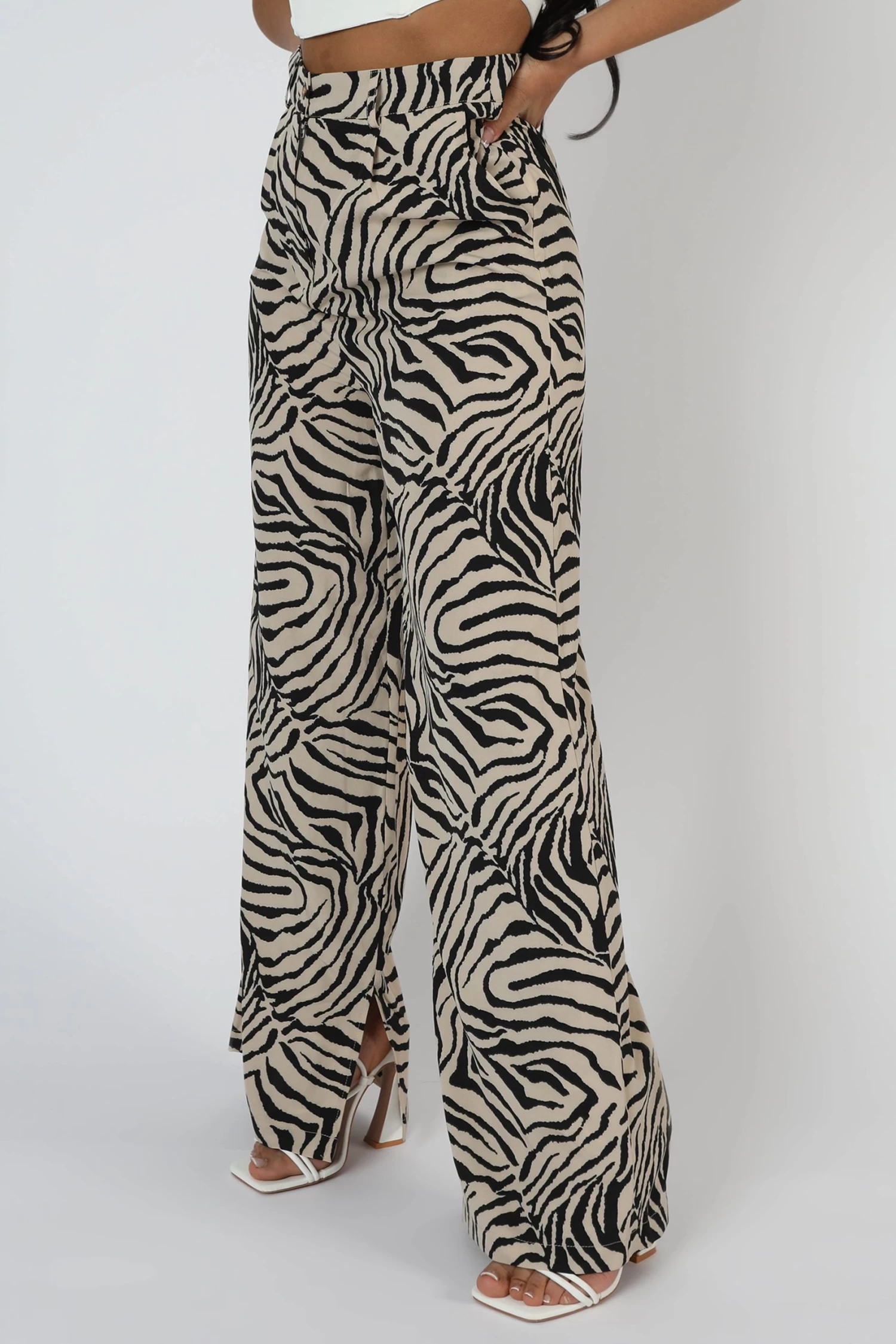 Zebra Print Tailored Trousers Stone -Chic Step Shop 15 scaled